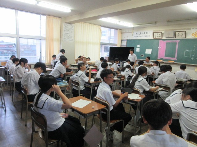 提出物を集めています。「宿題を頑張ってやってきたよ」という声がたくさん聞くことができました。