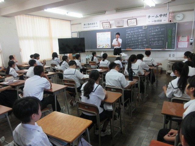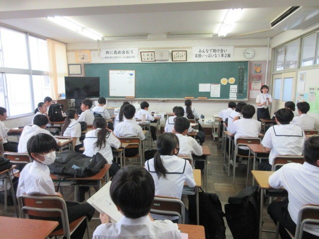 始業式後の1年生学活の様子です。久しぶりに会うクラスの仲間と楽しく会話をしていました。