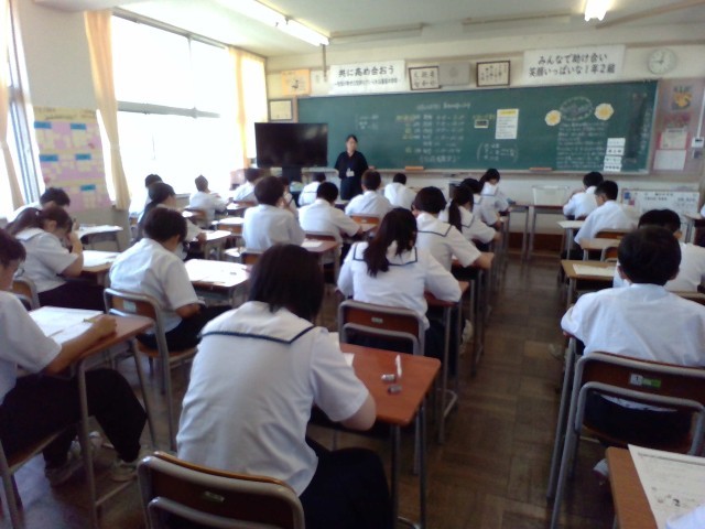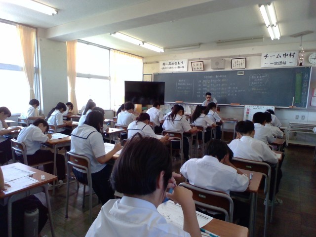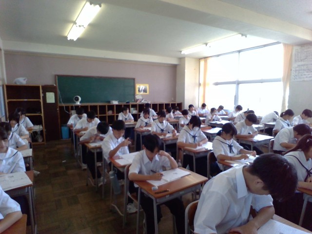 夏休み明けテストに取り組む1年生の様子です。多くの生徒たちが粘り強く取り組んでいます。