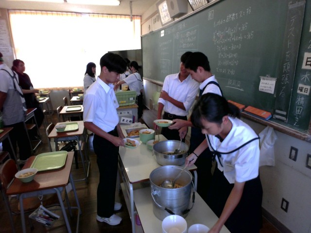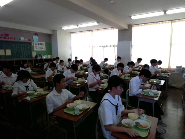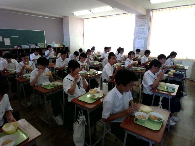 3年生の給食風景です。2学期初日も、給食当番は素早く準備をしていました。久しぶりの給食ですが、問題なくスムーズです。