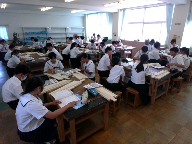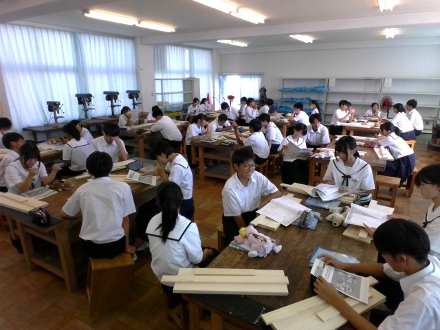技術・家庭科(技術分野)では、材料と加工の技術を学習しています。今日は材料を確認したり、「けがき」について学習したりしました。いよいよ製作が始まります。生徒たちは楽しみなようです。