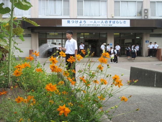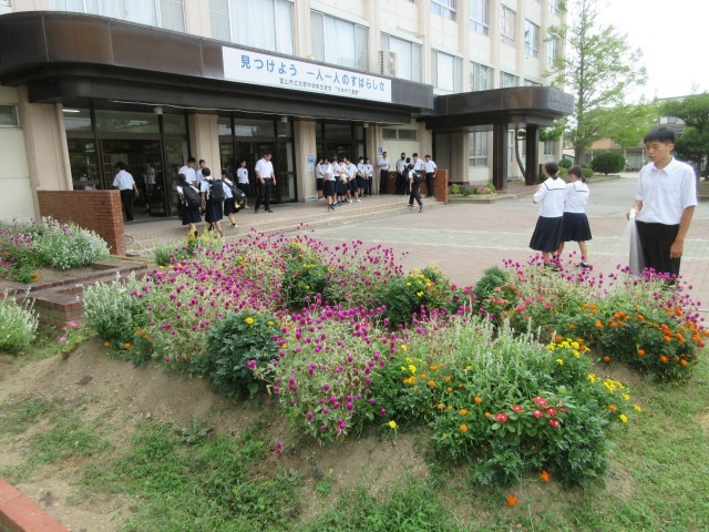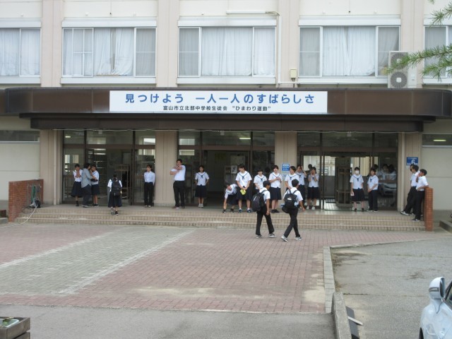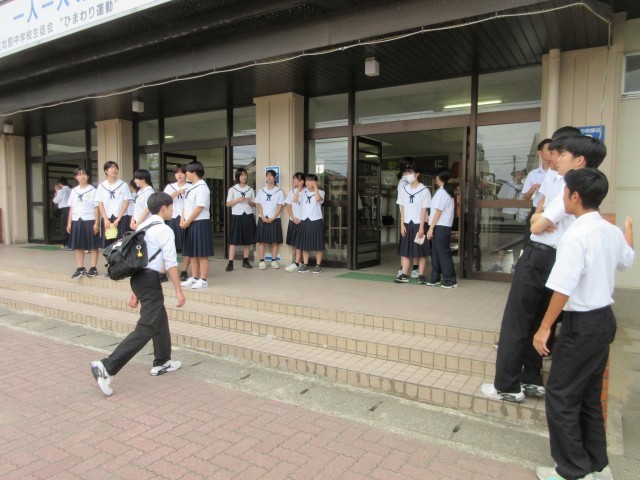 今日も朝からあいさつ運動の大きな声が響きわたっています。今日から教育実習を始める先生と一緒にあいさつをがんばっています。