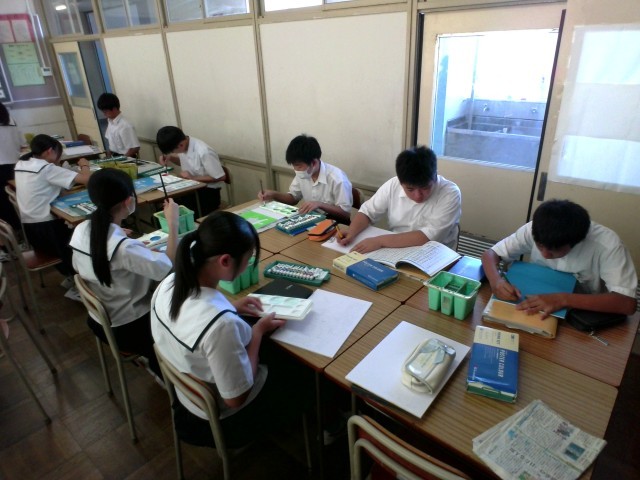 美術室は空調がなく、日当たりがとてもいいので、7月に続き、クーラーのある空き教室に引っ越して行っています。