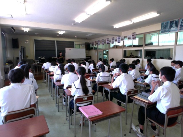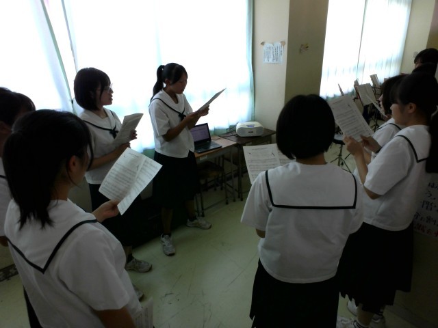音楽科では、合唱について学んでいます。今日の学習課題は、「パートの音程を覚えよう」です。生徒たちは、パートに分かれて音程を意識しながら練習していました。