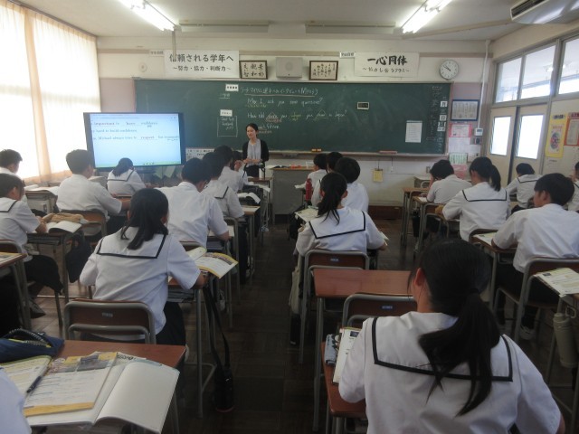 1組は英語。スポーツ選手のスピーチから英語を学んでいました。