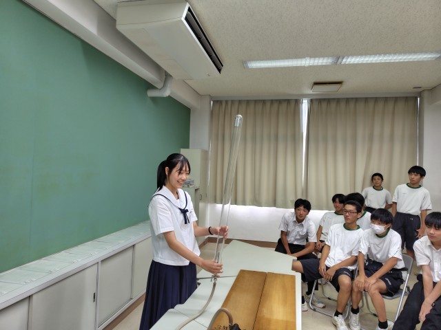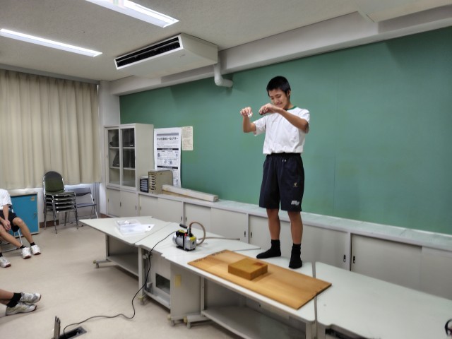 3年理科では自由落下について学習しています。重いものも軽いものも、同じ速さで落下すること、空気抵抗が無いと、羽もストンと落ちることを知って、ビックリしていました。