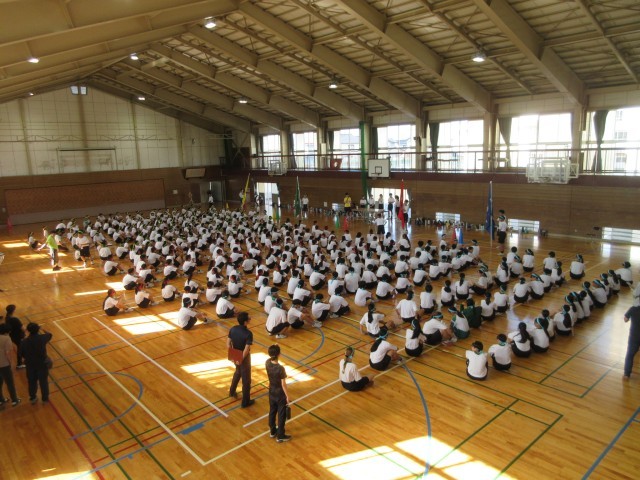 1限目、全体練習です。いよいよ体育大会の練習が始まりました。