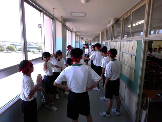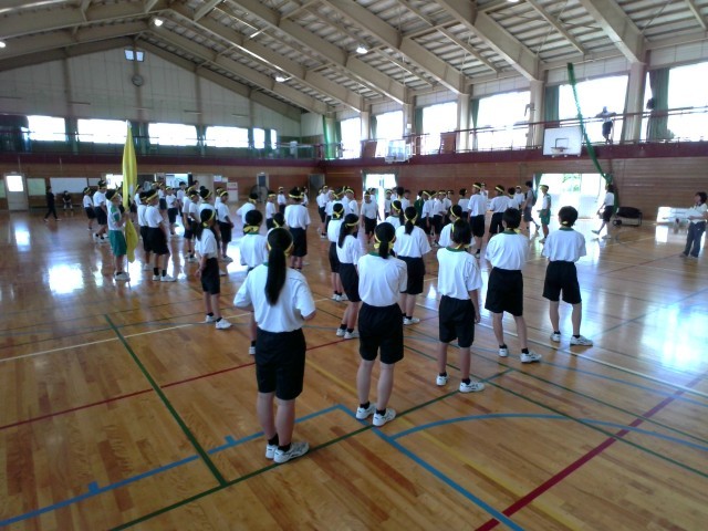 2限目は、団別練習です。体育館と各階教室・廊下に分かれて、団ごとに活動しました。