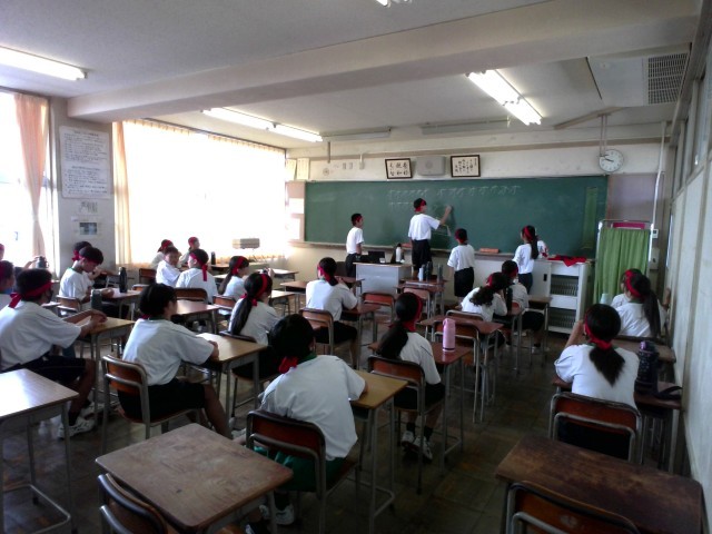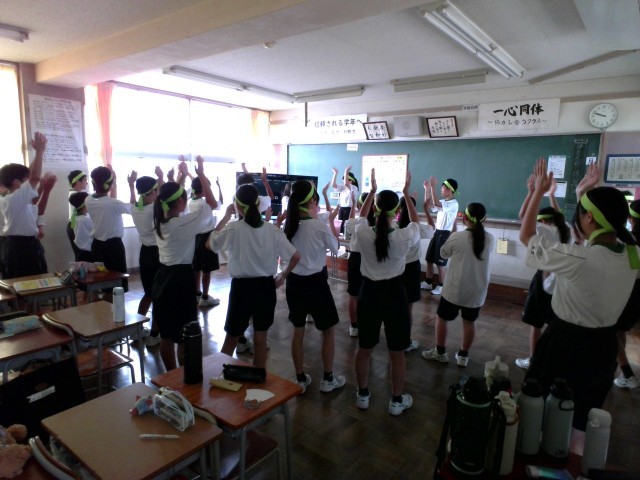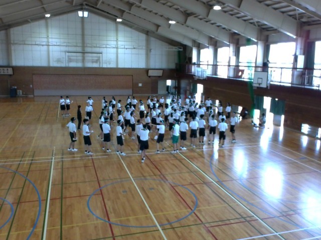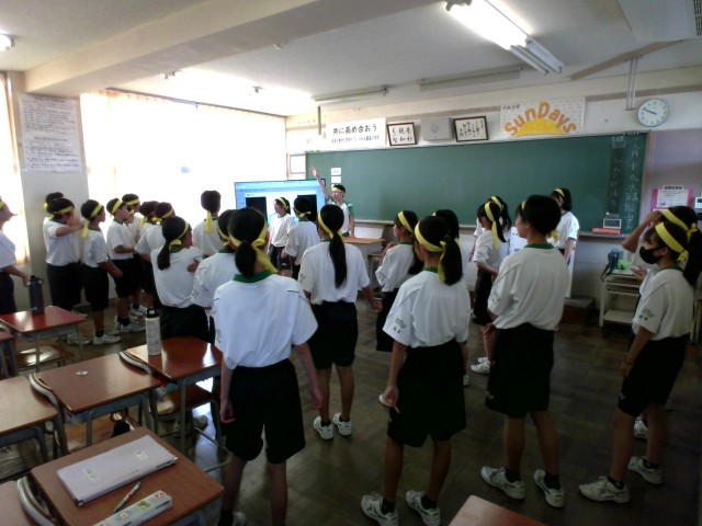 2限目、団別練習の2日目です。体育館や教室・廊下を使って活動しました。団リーダーが団員にかけ声やダンスの仕方を教えていました。