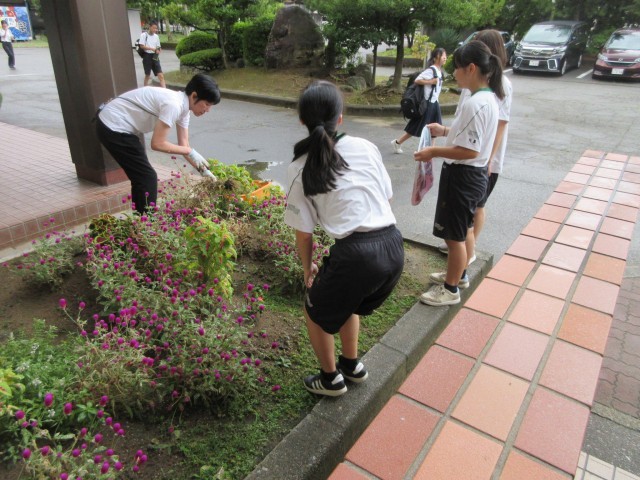 生徒たちは今日も元気に挨拶や花壇の草取りに活動しています。