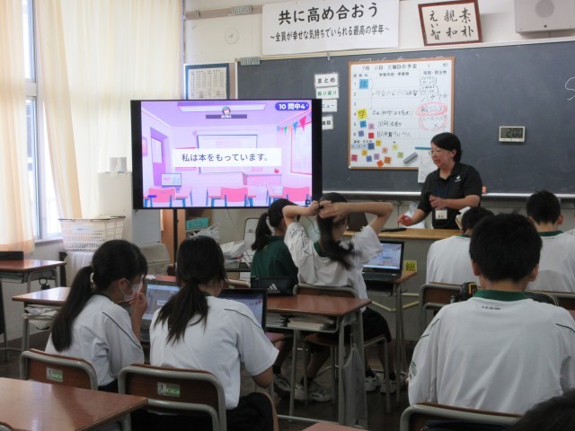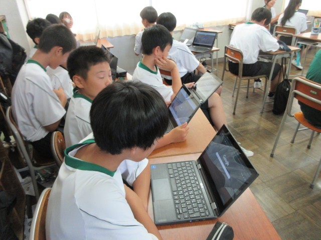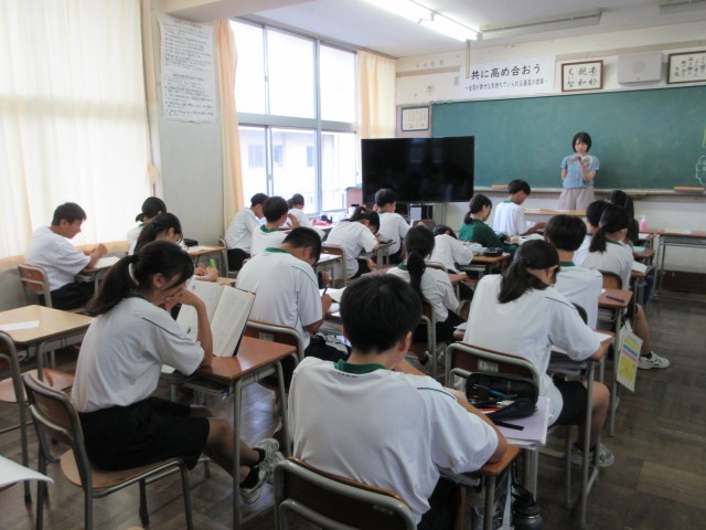1組は国語。安東みきえの小説「星の花が降るころに」を通読していました。