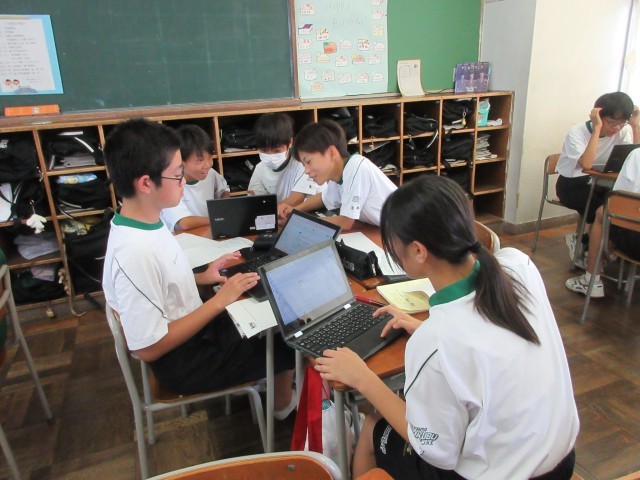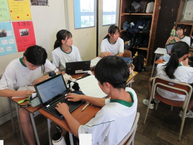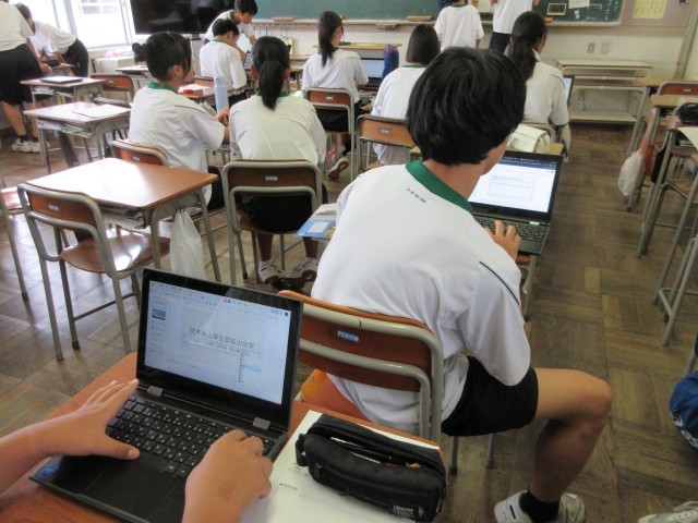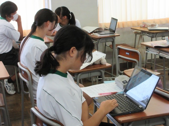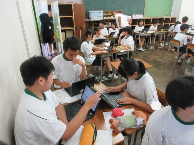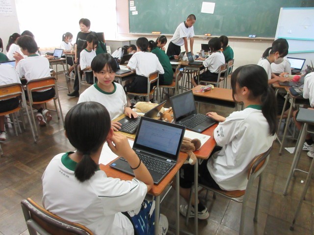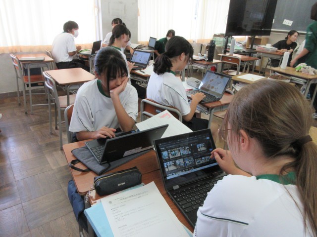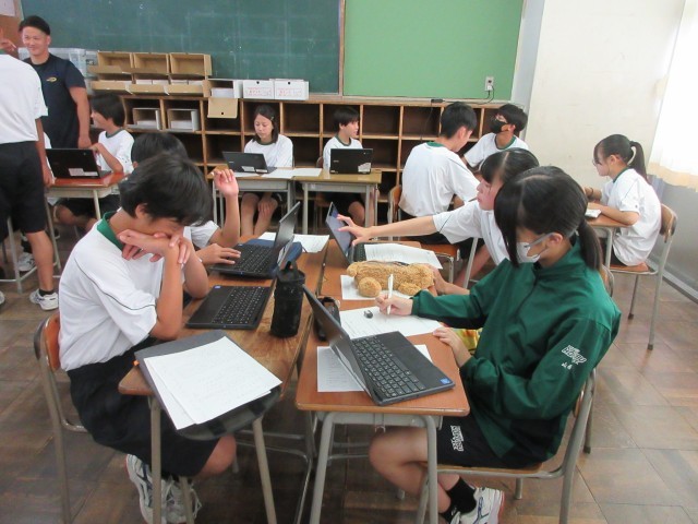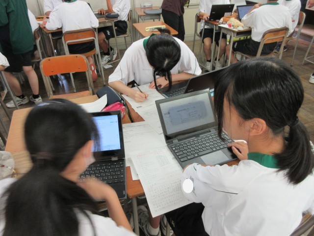 1学期に行った「社会に学ぶ『14歳の挑戦』」について発表する原稿づくりを行っています。