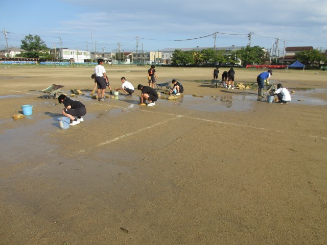 9月17日(水)登校風景 公開日 2025/09/17 更新日 2025/09/17 北中NEWS 早朝の雨に驚きました。早く登校していた生徒たちやバレーボール部の生徒たちが、グラウンドの水取りをがんばっていました。水たまりがみるみる小さくなっていくのがわかりました。