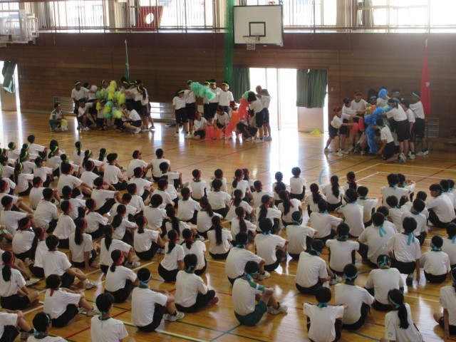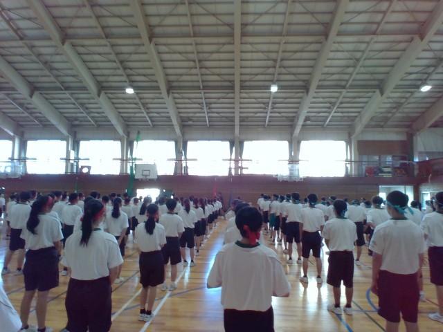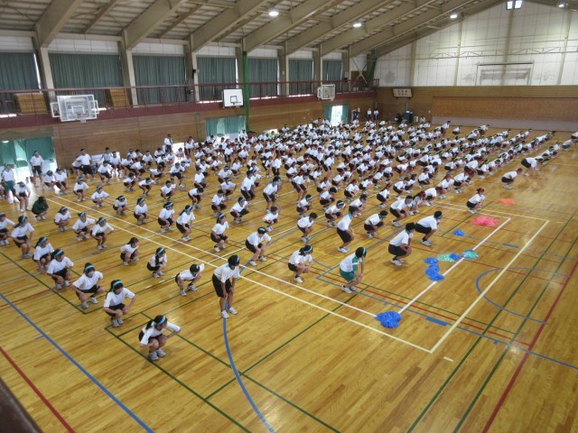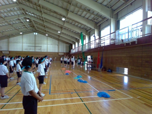 1限目は体育館で全体練習です。開会式・閉会式の流れの変更点を皆で確認しました。