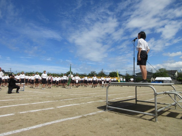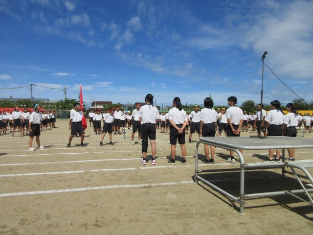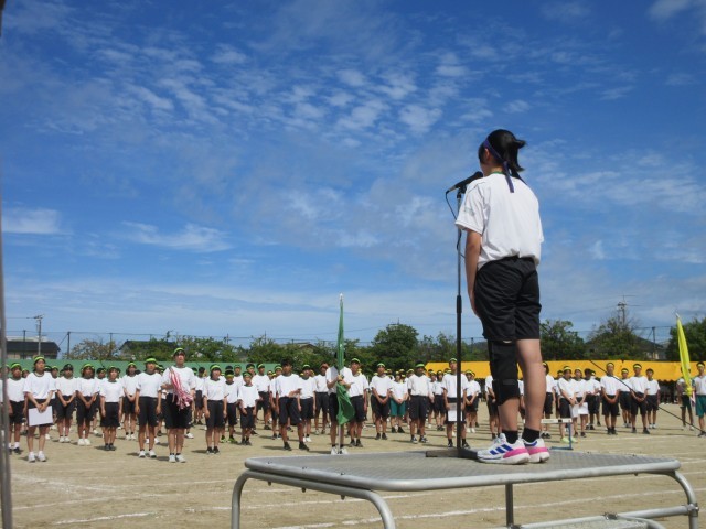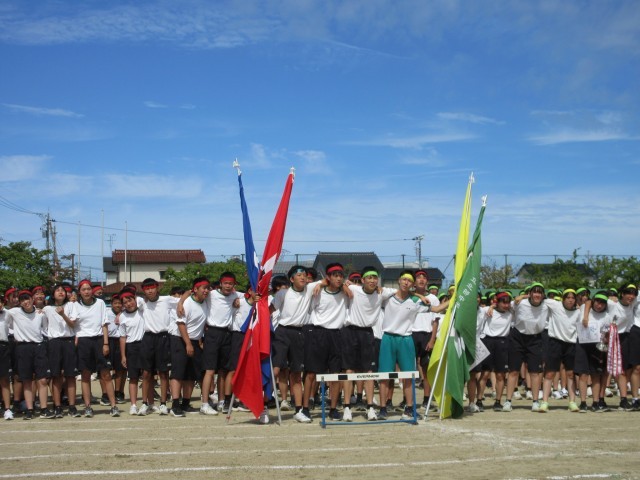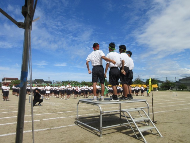 閉会式では、実行副委員長の挨拶のあと、式台に上がった4人の団長の指示のもと、全校生徒が肩を組んで校歌を歌いました。