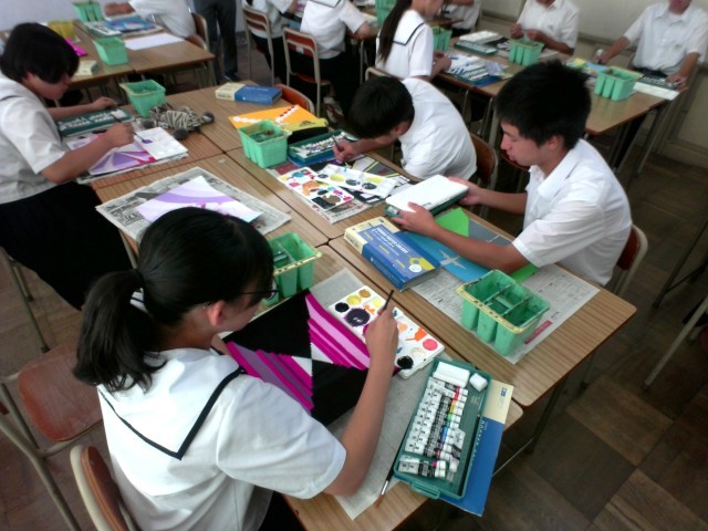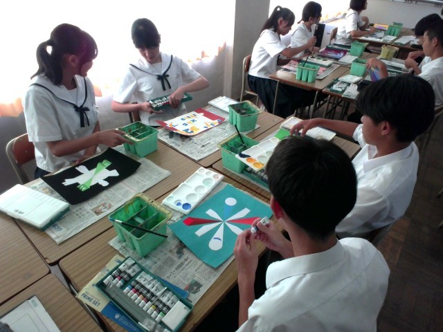 美術科では、現在デザインを学習しています。デザイン制作も次回で終わりです。多くの生徒が最後の仕上げに取り組んでいました。