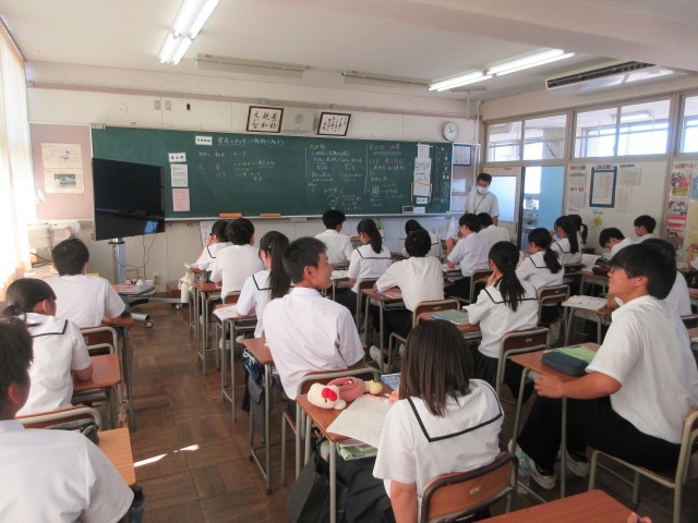 3組は技術・家庭科(技術)。電気エネルギーの特徴を学習しています。まもなく製作も始まります。