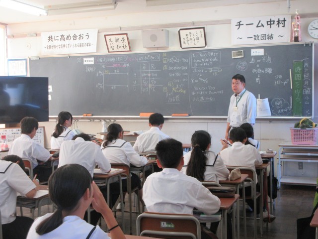 3組は数学。方程式に慣れるため、プリントの問題を練習しています。