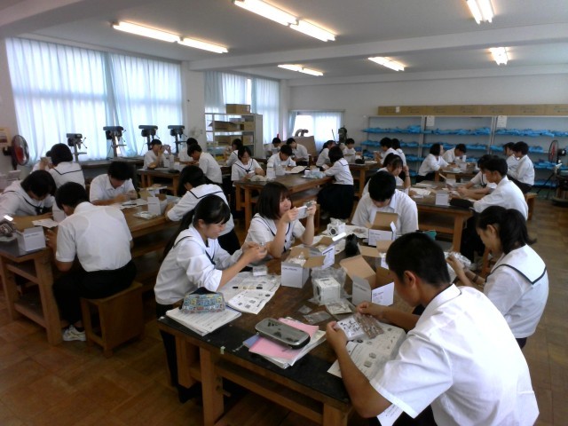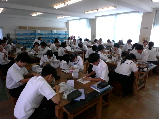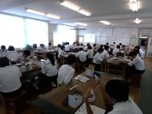 現在、3年技術・家庭科(技術分野)では、ラジオの製作をしています。今日は、教材を配付し内容物を確認しました。次回は、はんだ付けを学習します。