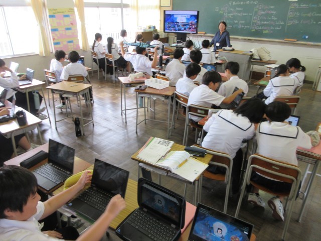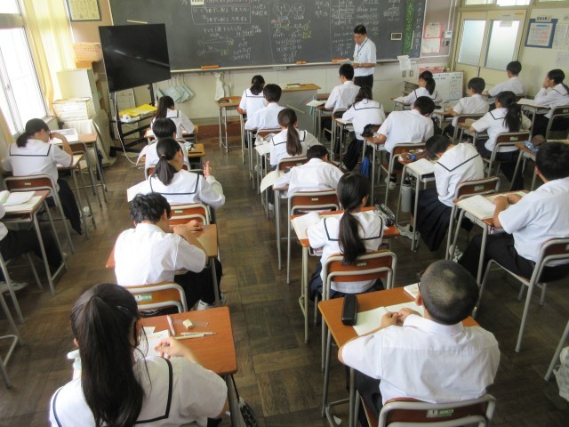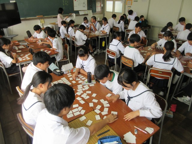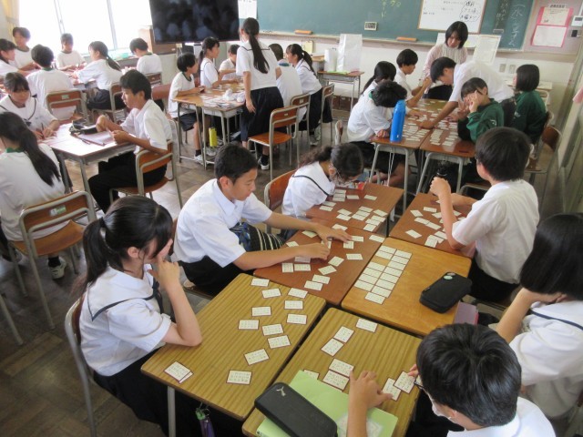 1組は百人一首に挑戦していました。中には、コツをつかんでいる生徒もいます。