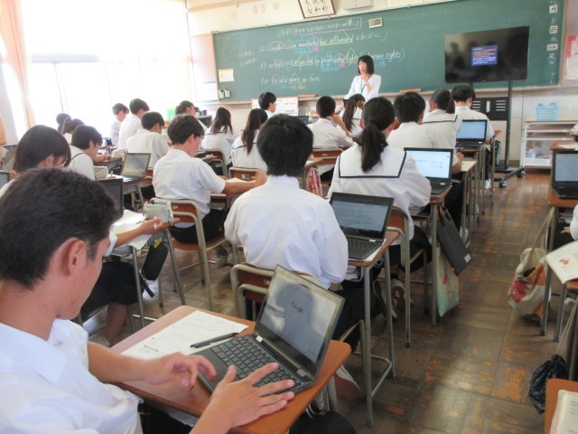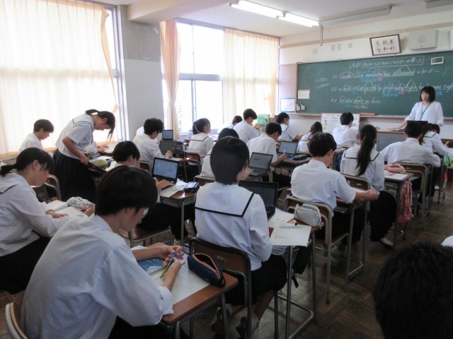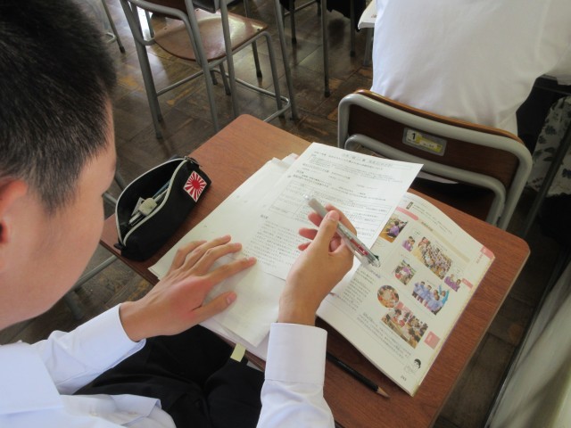 1組は英語。「自分がどんな人になりたいか書こう」一人ずつ発表しています。
