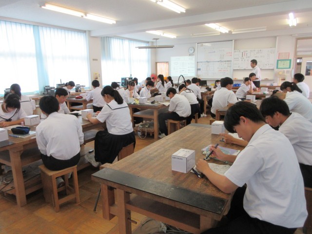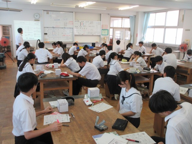 3組は技術。エコキューブラジオ製作のための、はんだづけなど学習しています。