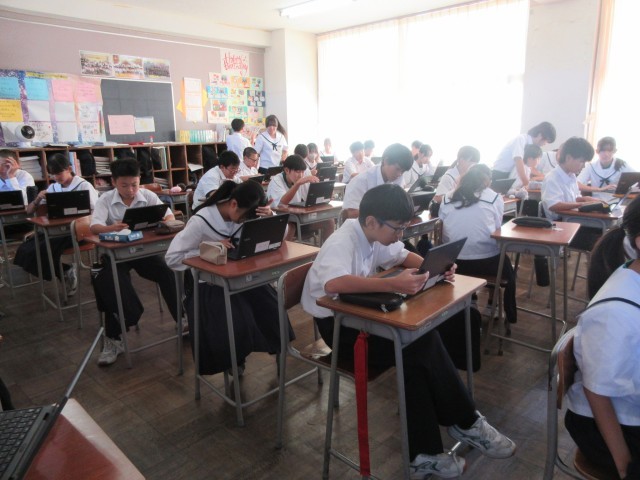 今日はそのオリエンテーションを行いました。校外学習では「自分の知らない富山を知ろう」をテーマに、班ごとにコースを決めて活動します。クラスに戻った後は、どんなことを知りたいかクロームブックを使って調べ学習をしました。