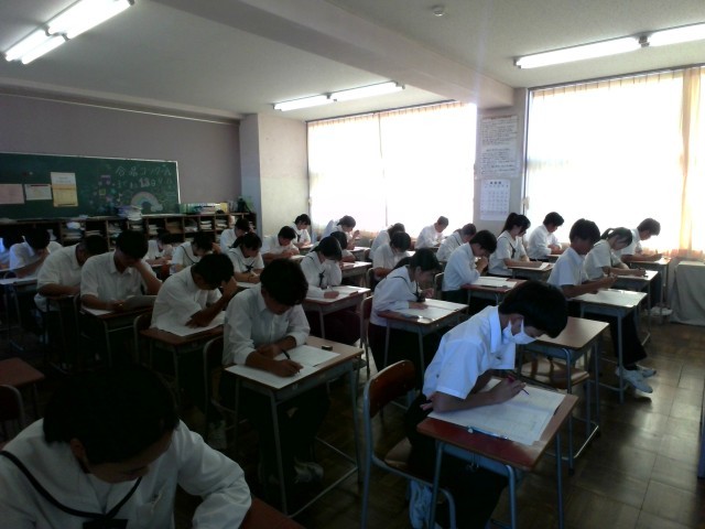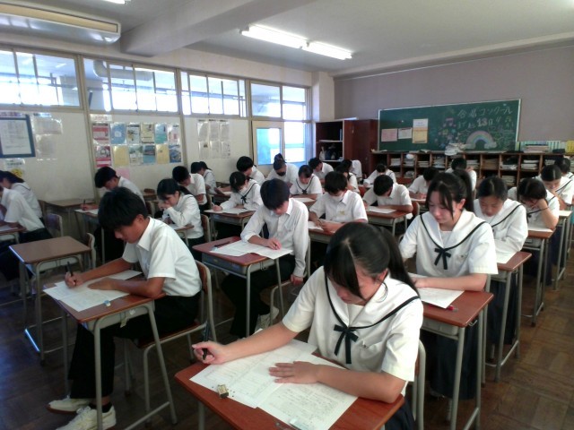 3年生は、確認テスト2日目です。1限目は理科です。生徒たちは、真剣に取り組んでいました。
