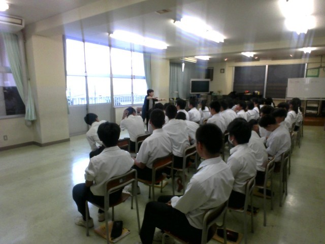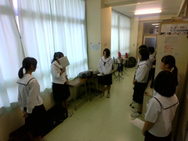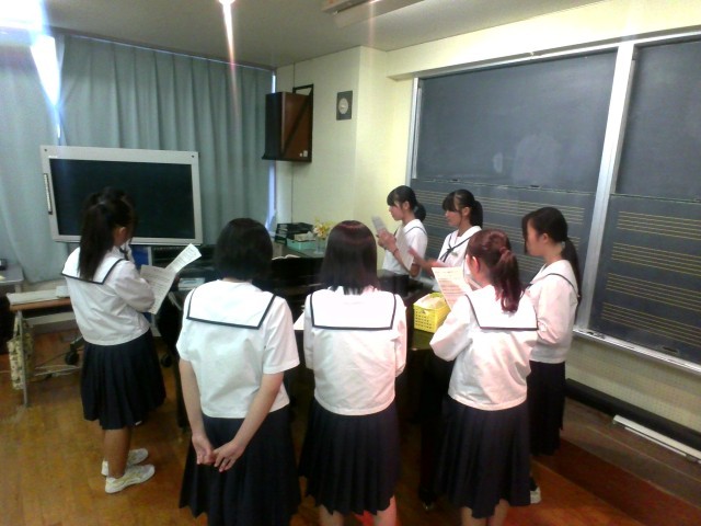 音楽では、合唱を学んでいます。今日は、各パートに別れて練習したり、一緒に合唱したりして歌っていました。生徒たちは、先生のアドバイスに耳を傾けていました。