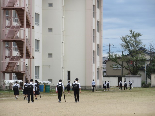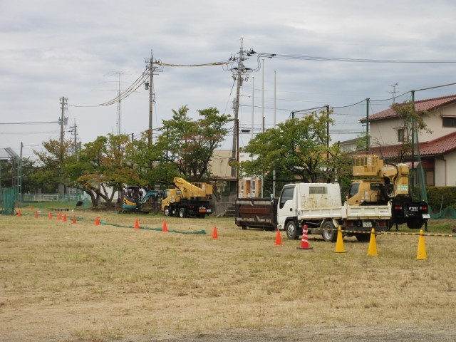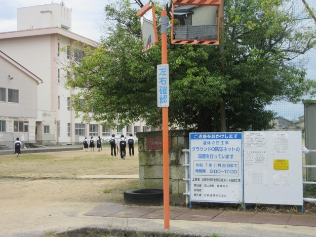 現在、本校グラウンド北側の防球ネット設置工事を行っています。