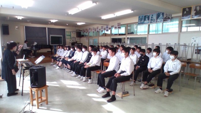 3年音楽科では、合唱を学習しています。全校リハーサル後の反省を生かして、練習していました。特に歌詞に込められた思いをイメージしながら、気持ちを歌声に乗せて歌うことを意識して歌っていました。