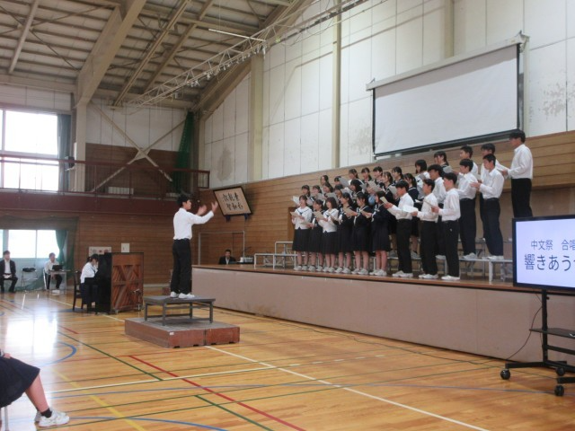 11月8日(土)オーバードホールで行われる富山市中学校文化祭において、本校3学年有志が合唱を披露します。合唱コンクールリハーサルでメンバーが紹介され、歌声を全校生徒に披露しました。忙しい中、放課後や家庭で練習をしていました。合唱コンクールでも歌います。本番まであとわずかです。すばらしい歌声を楽しみにしています。
