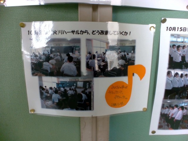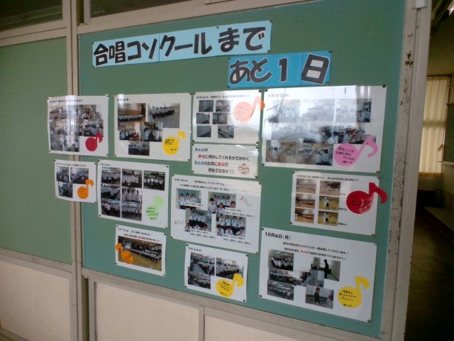 10月22日(水)2年廊下掲示「合唱コンクールまで」