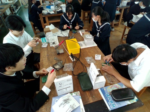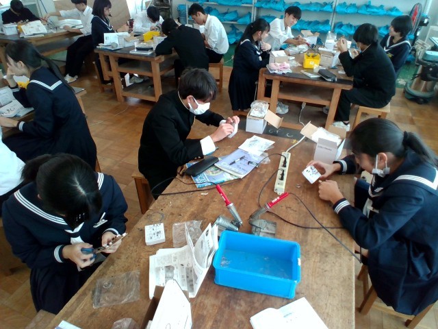 3年技術・家庭科(技術分野)では、エネルギー変換の技術を学習しています。今日は、直流と交流の違いや電子部品のはたらきの実験をしました。生徒たちは、実験を通して、理解を深めていました。