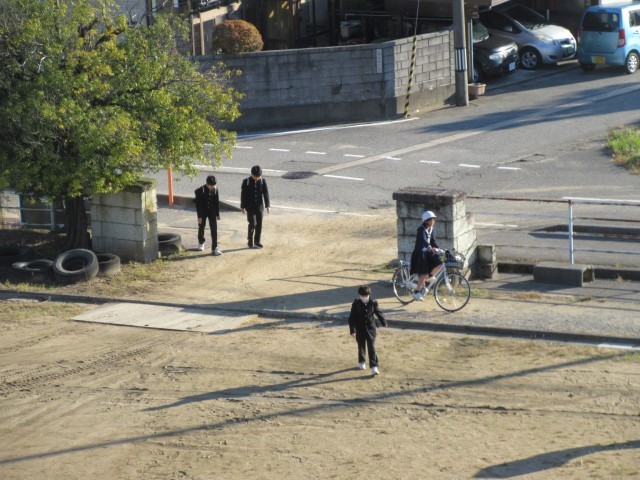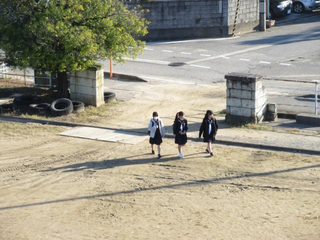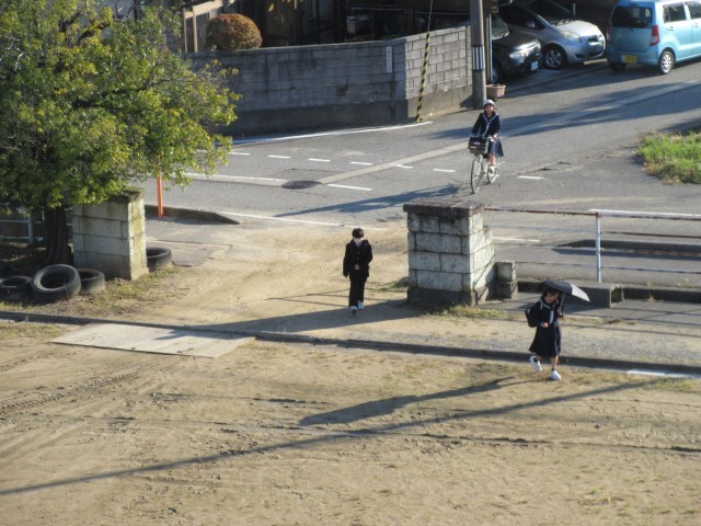 朝の光がまぶしく感じられます。生徒たちは今日も元気に登校しています。