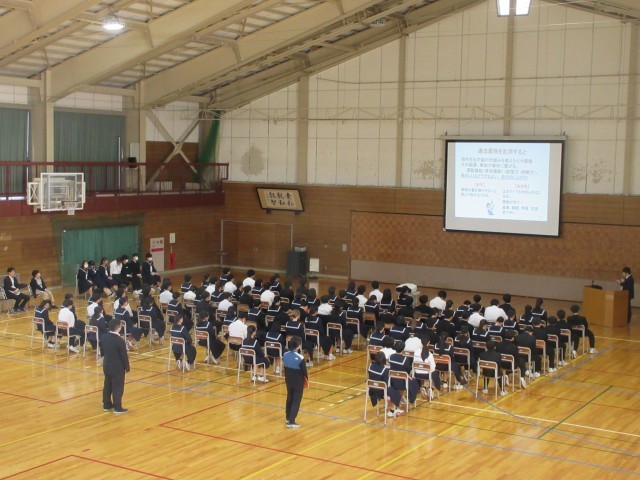 5,6限に学校薬剤師さんを講師に招いて、保健委員会が司会進行のもと2年生を対象とした薬物乱用防止教室を行いました。普段は目にしない危険ドラックから、私たちも使用することができる市販薬まで、使用の仕方一つで体に悪い影響を与えることを学びました。