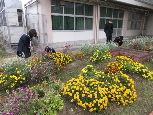 今朝も花壇の草取りや挨拶運動に元気な姿を見せる生徒たちです。