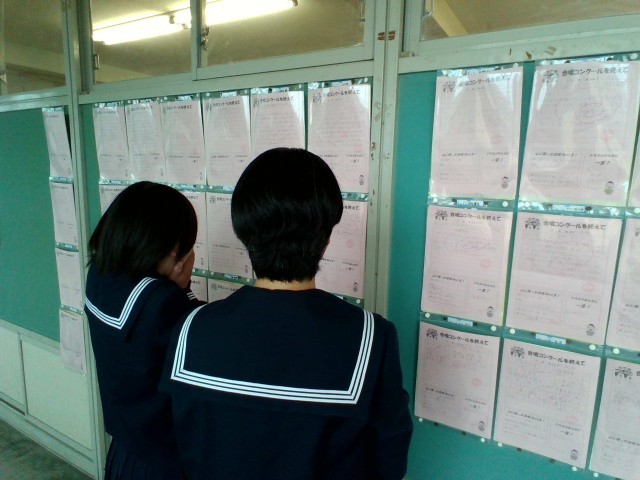 10月31日(金)3年廊下掲示板 公開日 2025/10/31 更新日 2025/10/31 第3学年 現在、廊下の掲示板には、「合唱コンクールを終えて」が掲示してあります。生徒たちは、休み時間を利用して読んでいる姿がありました。