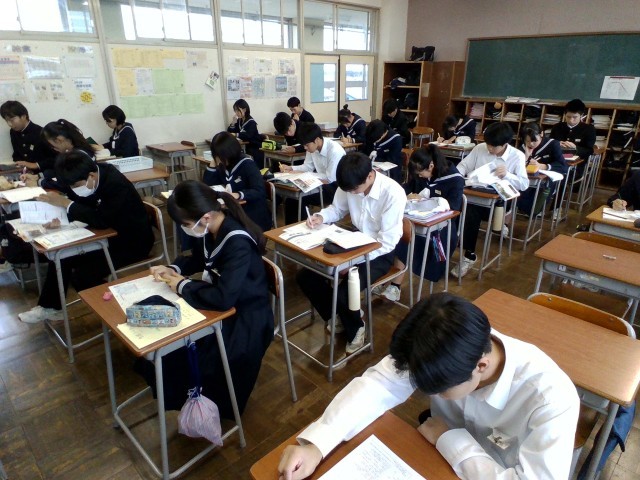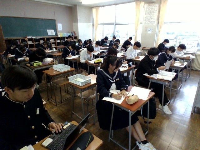 3年朝活動の様子です。生徒たちは、黙々と課題を進めていました。