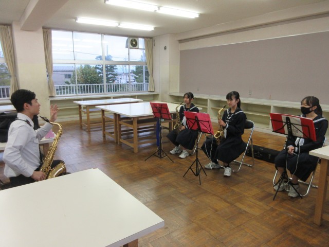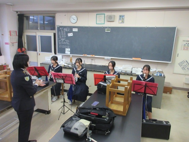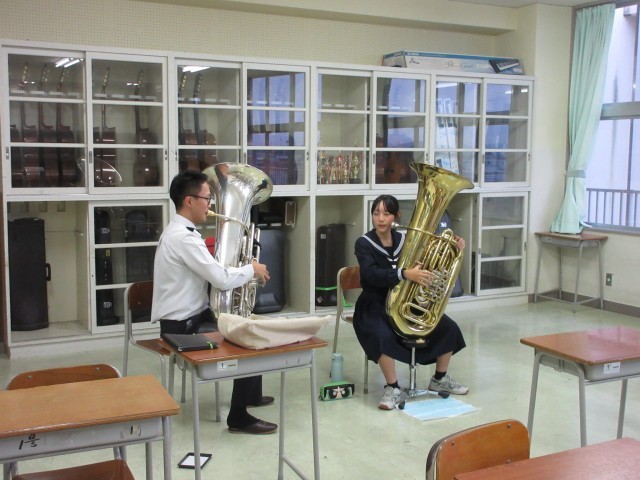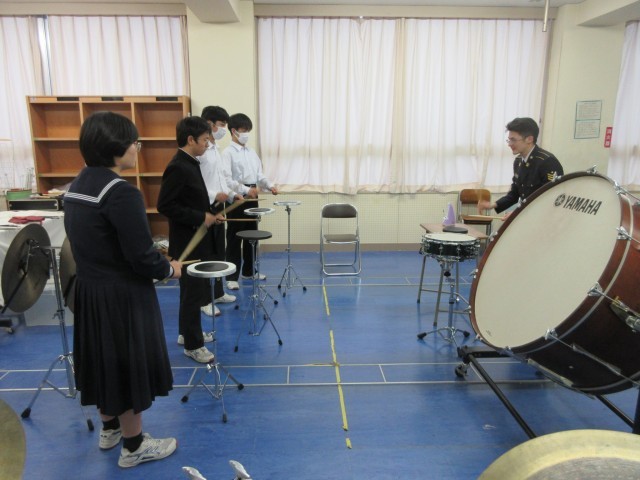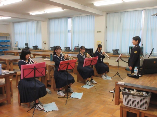 本日、陸上自衛隊第10音楽隊の皆さんが来校され、吹奏楽部一人一人にレッスンをしてくださいました。