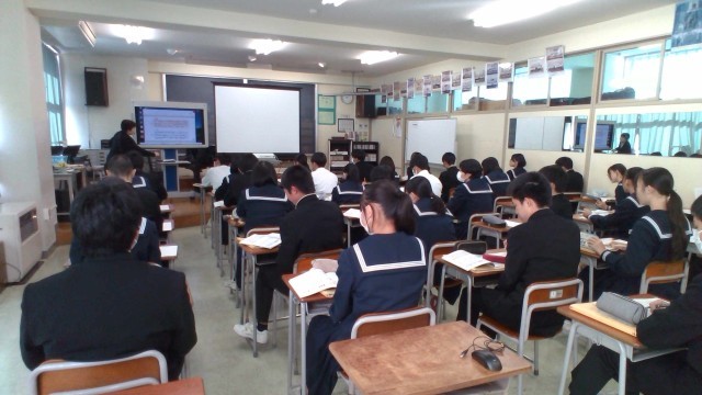 3年音楽科では、オーケストラの鑑賞をしています。生徒たちは、楽器の音色を楽しみながらオーケストラの響きを味わっていました。