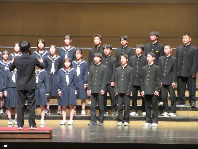 音楽発表で本校は3年生有志による合唱「響きあう命」を発表しました。