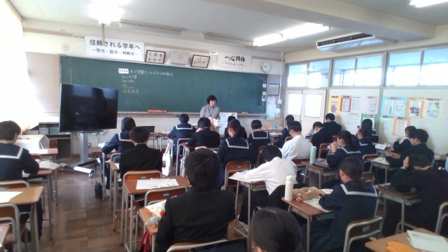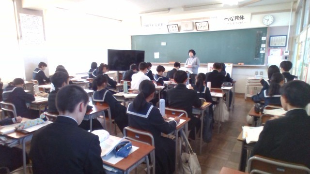 2年技術・家庭科(家庭分野)では、食生活について学習しています。今日は、肉や野菜をバランスよくとれる献立をづくりを考えました。考えた献立を家庭でも実践できるとよいですね。