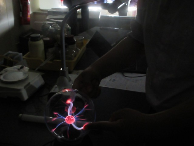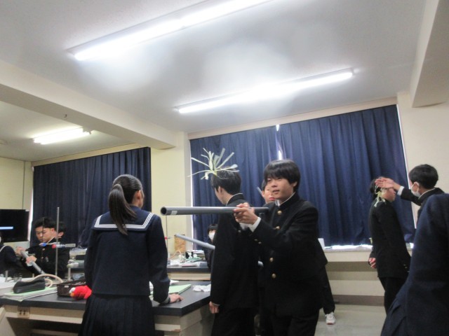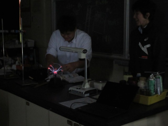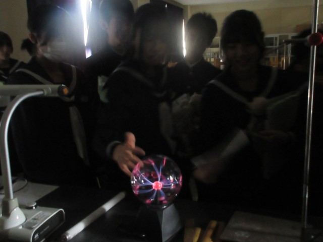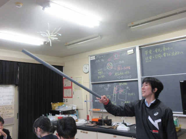 2年理科の授業風景です。静電気がなぜ発生するのか学習しました。静電気について、興味を深め楽しんで活動をしていました。