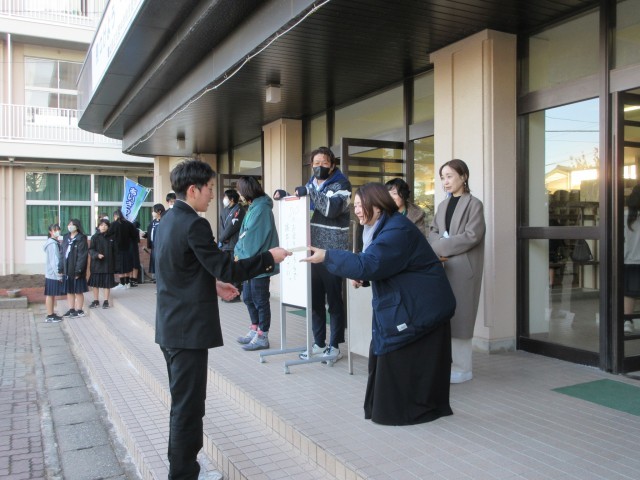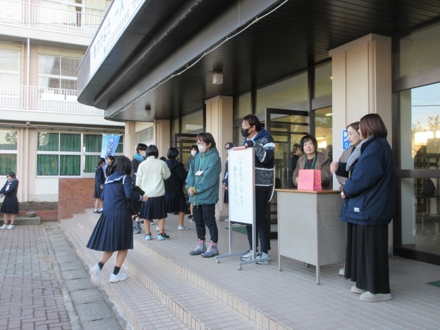 生徒たちとの交流も生まれ、朝の玄関が温かい雰囲気となりました。