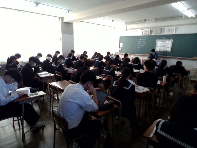 第3回定期考査3日目です。生徒たちは朝早く登校して勉強に励んでいる姿が見られ、朝活動の時間も真剣に取り組んでいました。