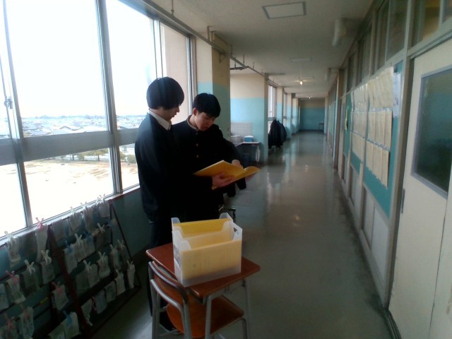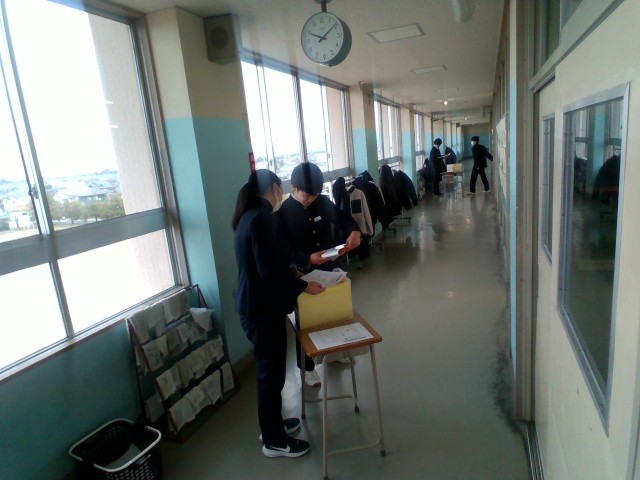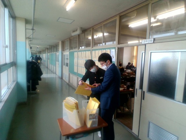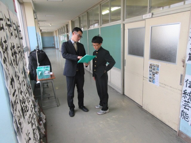 担任が生徒一人一人に声をかけ、通知表を手渡しました。