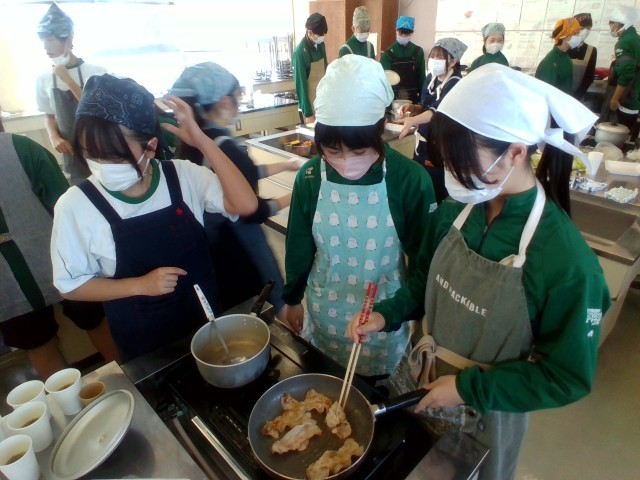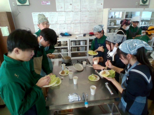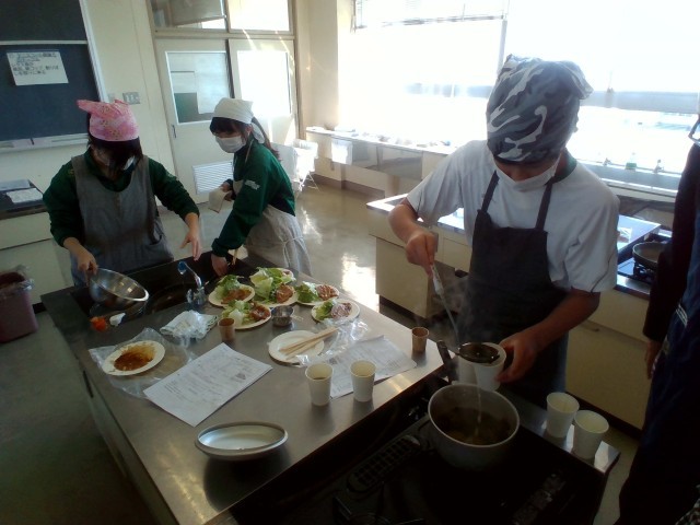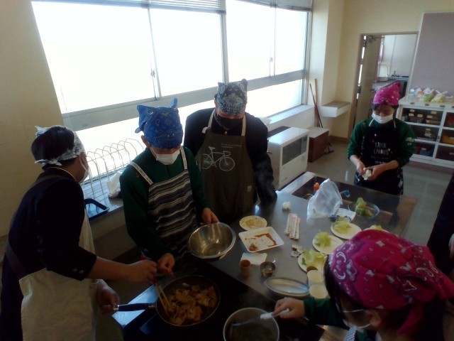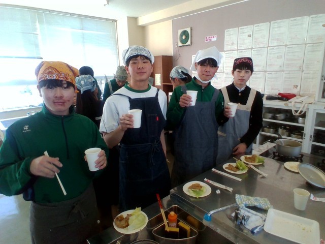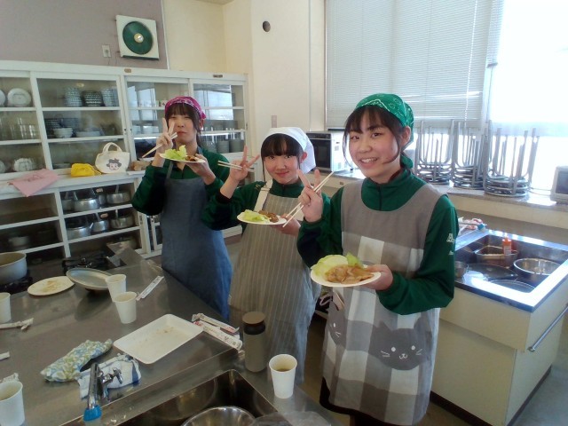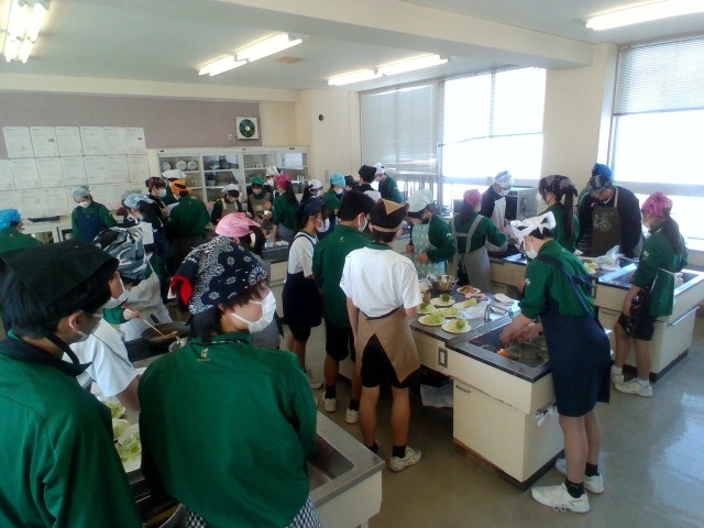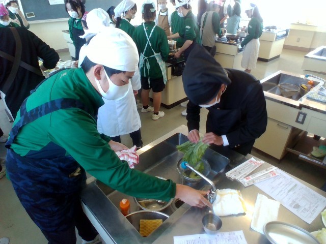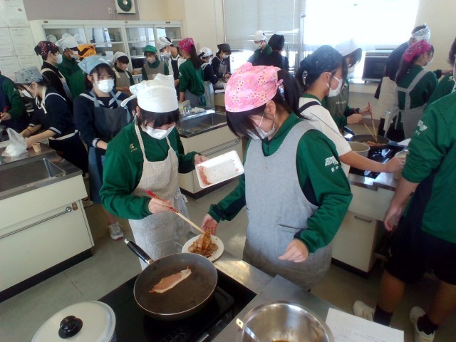 3年技術・家庭科(家庭分野)では、調理実習をしました。「豚肉の生姜焼き」「レタス」「わかめスープ」を作りました。生徒たちは、役割分担をもとにテキパキと調理していました。この機会にぜひ、家庭でも挑戦してほしいです。