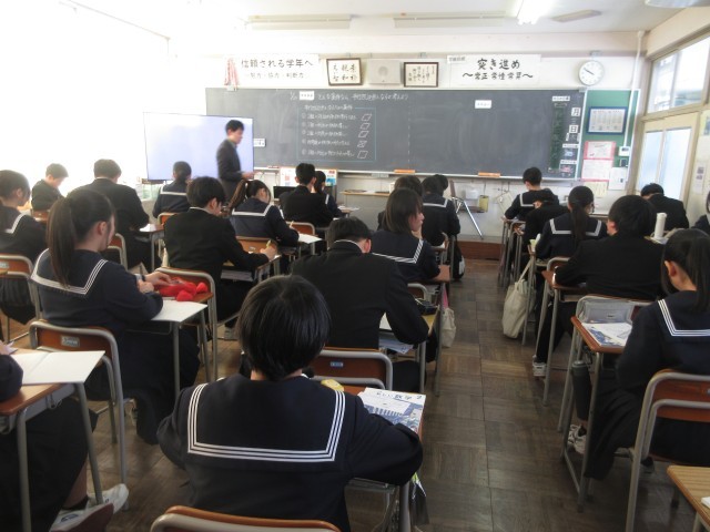 3組は数学。どんな条件なら平行四辺形になるのか学習しています。