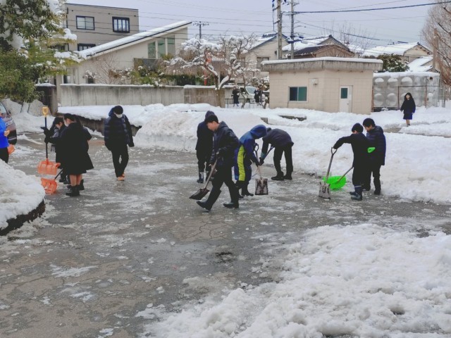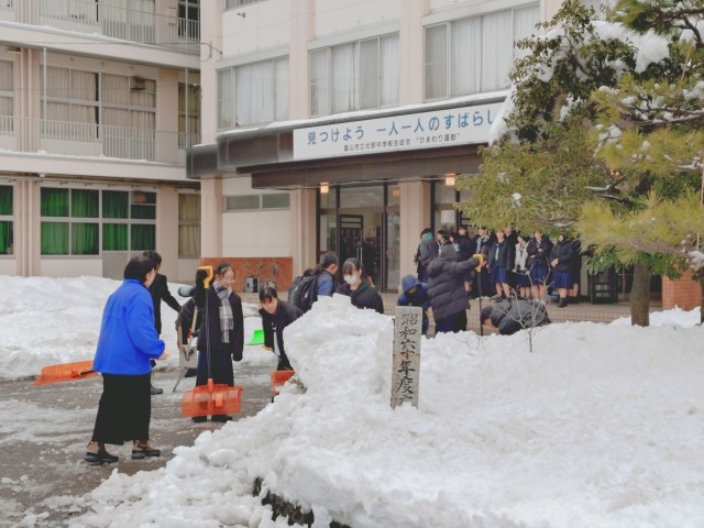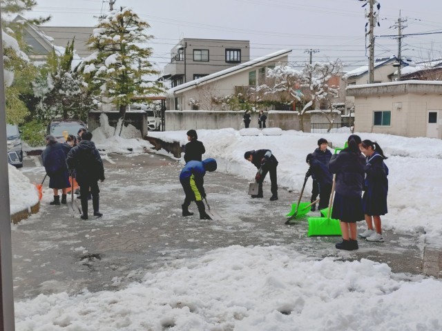 昨日も今日も、多くの生徒たちと教職員で除雪作業を行いました。